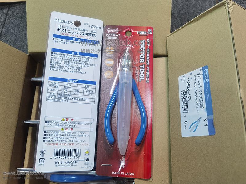 日本VICTOR 113BSD-125留屑鉗配備了一個廢料收納筒,防止切斷的引腳導線余料飛濺造成風險,61HRC硬度鉻釩鋼刀刃可剪切1.2mm線徑的軟鐵線及2mm以內銅引腳導線,不可用于切割不銹鋼類硬線。勝利113-BSD-125防飛剪鉗全長125mm,人體工程學塑膠手柄手感舒適,防滑耐用。