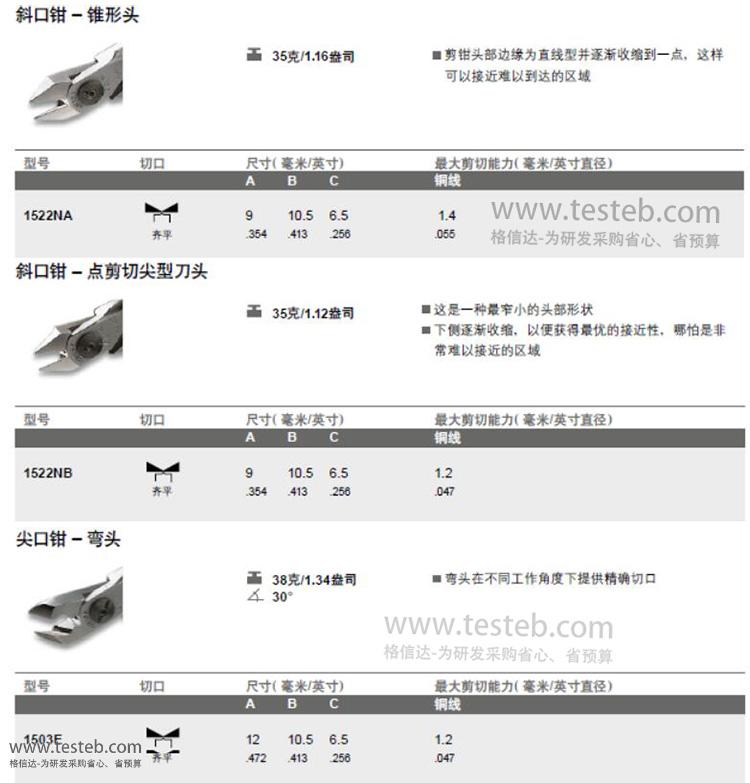 1503E彎頭鉗:在不同工作角度下提供精確剪切,齊平切口,1.2mm剪徑