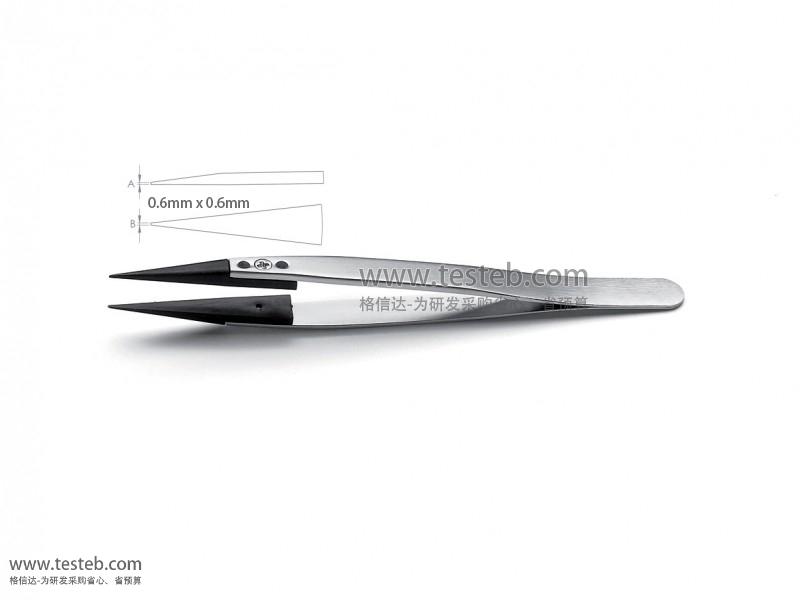 SV:High performance plastic高性能塑料,PVDF polyvinylidene fluoride carbon fibre reinforced,PVDF聚偏氟乙烯(特氟龍一種)碳纖維增強,ESD防靜電阻值10^5Ω歐姆,耐高溫150°C,低摩擦無劃痕損傷;優良的耐酸堿腐蝕耐化學性,防氫氟酸、硝酸、鹽酸及無機酸和有機酸、溶劑、鹵素等。如型號ideal-tek 259SVR.SA鑷子0.6mm尖直頭。