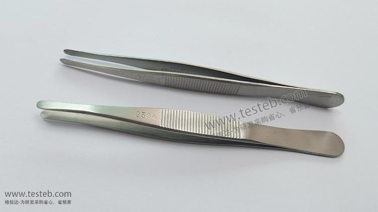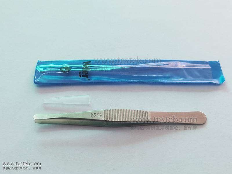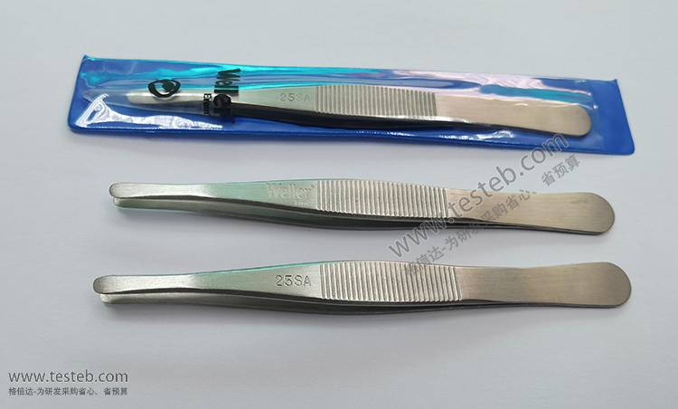 25SA鑷子手柄指部地帶有鋸齒,便于安穩夾取物體