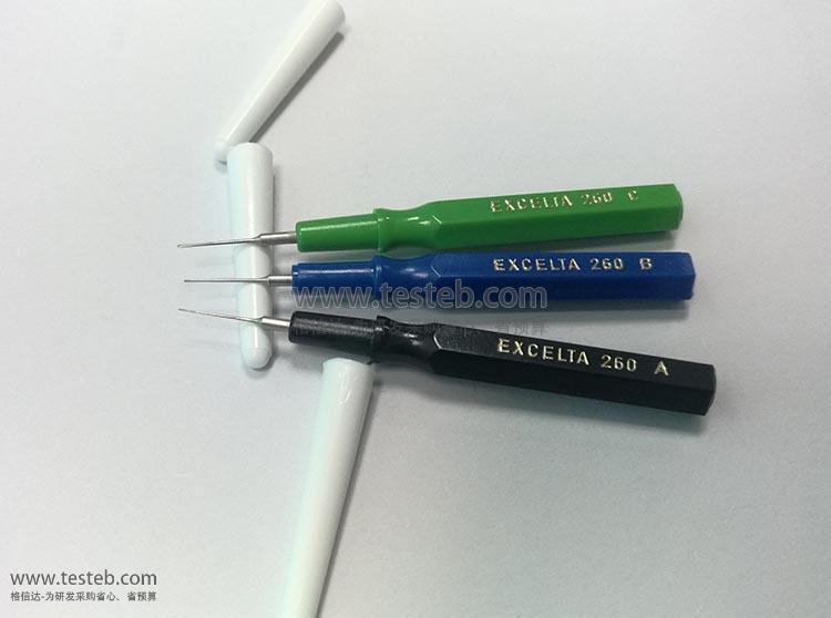 Excelta 260系列微型針用于將油脂或潤滑劑注入狹小空間,260A微型注油針具有0.25mm細(xì)小尖頭,黑色塑料手柄,全長63.5毫米,也可用于電子產(chǎn)品裝配過程中的點(diǎn)膠、滴潤滑油,或應(yīng)對小部件刮漆等挑或拔操作。