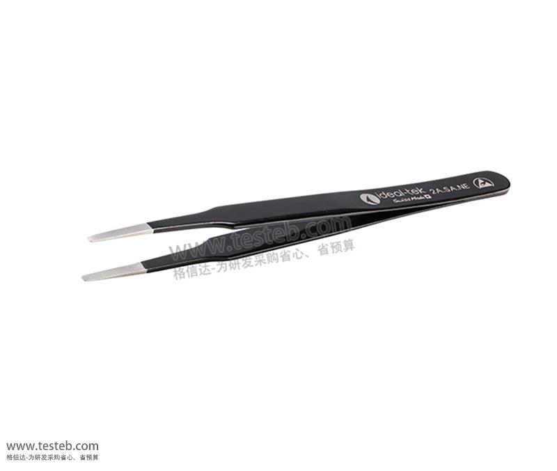 瑞士ideal-tek 2A.SA.NE鑷子本體為SA低碳奧氏體不銹鋼材質抗磁性耐高溫350℃,表面鍍一層黑色環氧樹脂涂層NE,符合ESD防靜電和潔凈室操作要求,扁平頭寬度2.2mmx0.2mm厚度,適合夾取片狀物體,應用于微電子、鐘表珠寶商以及實驗室和醫療應用。