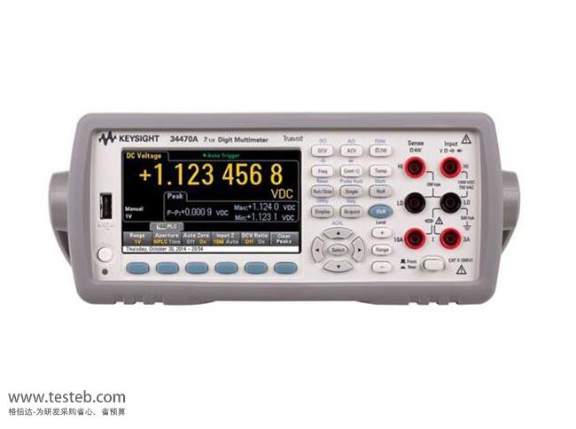 美國Keysight 34470A七位半臺式數字萬用表能夠測量極小的電流,皮秒級分辨率和1μA量程可用于測量功率極低的器件,電壓量程100mV~1000V,DCV基本精度16ppm,電阻100Ω~1000 MΩ,并可測電容、頻率、方波,高速率5000個讀數/秒。