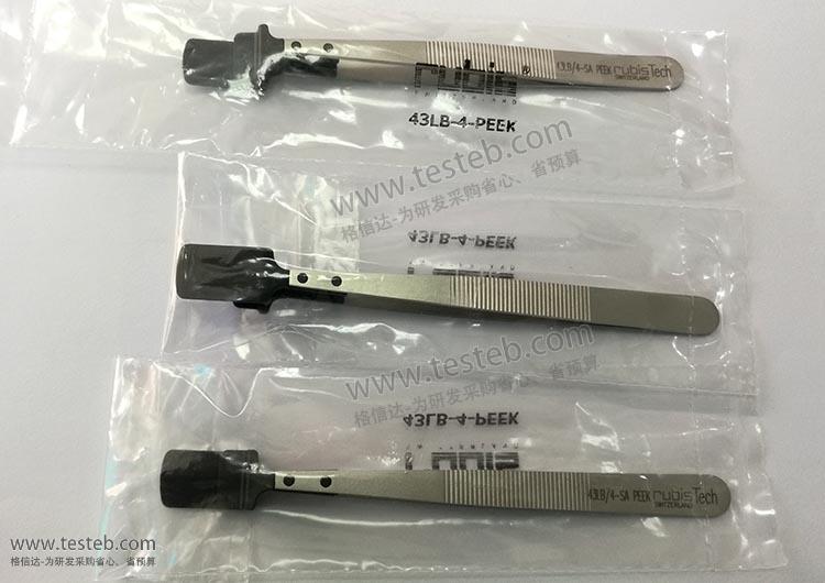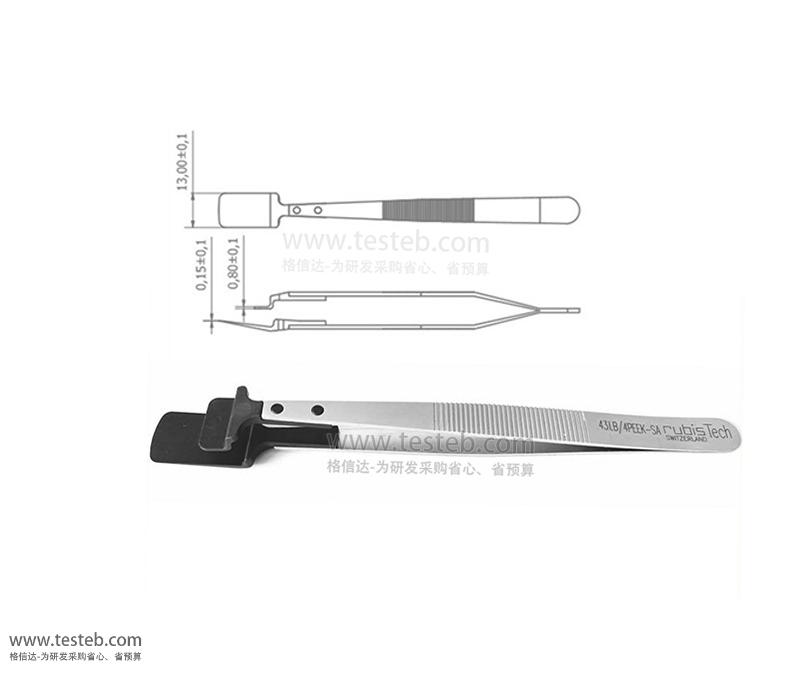 瑞士Rubis 43LB-4-PEEK晶圓鑷子型號不銹鋼手柄印43LB/4PEEK-SA字樣,ESD防靜電PPEK樹脂夾頭寬13mm,表面拋光光滑防止劃傷,抗熱老化、耐高溫250℃、耐腐蝕,適用于4寸Wafer硅片及第三代半導體晶片等精密平板夾取轉移操作。