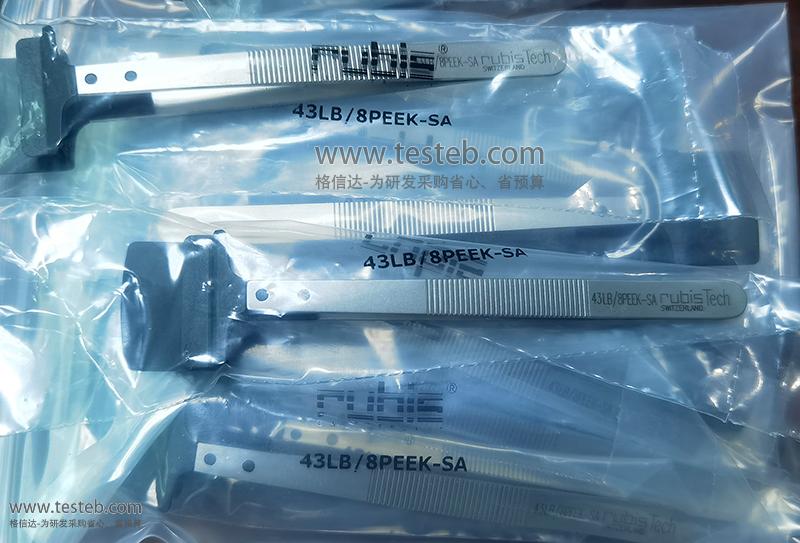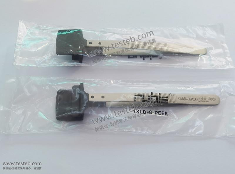 瑞比時Rubis 43LB-8-PEEK晶圓鑷子包裝及手柄印刷字樣43LB/8PEEK-SA,用于6至8寸wafer硅片夾取轉移,塑料夾頭寬27mm,內側表面拋光光滑防止Wafer劃痕損傷,ESD防靜電安全,耐化學品和耐腐蝕、耐高溫250℃,是手動夾取轉移高價值精密第三代半導體硅基晶元片的理想工具,全長138mm,非磁性不銹鋼手柄帶鋸齒握把。