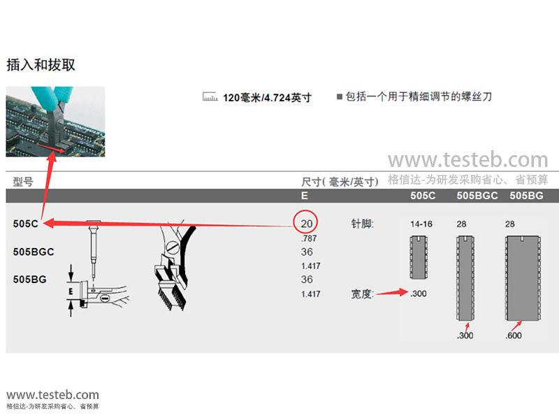 | 505BGC起拔鉗 | 插入和拔取 | IC和SMD元件 | 28針腳 元件寬度7.6mm,長度36mm |