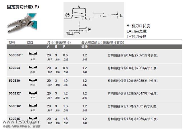 | 530E13剪切鉗 | 保留1.3mm | 1.2mm | 齊平切口 |