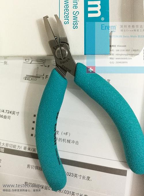 瑞士EREM 530E08剪鉗用于剪切銅線引腳并保留0.8mm固定長度,采用特殊工具鋼材質,打磨過的鉗頭頂部,減小對于元件的機械沖擊,以防止損壞線路板,防靜電手柄,人體工程學設計,操作安全舒適。