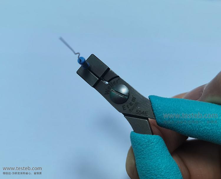 Erem by Weller 554E成型鉗用于二極管引腳直徑0.65mm以內、電容引腳直徑0.7mm以內以及1/2W色環電阻引腳打K腳U形成型,使其安裝焊接到線路板上具有消除應力減震效果,從鉗子側面放入元件引腳壓制操作,不影響視線,成型效果一致,折彎距離元件本體3mm起,弧形半徑R=2mm。