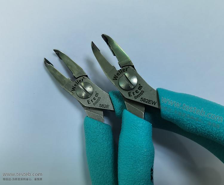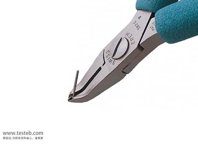 恩瑞Erem 582EW剪鉗具有45°彎頭,精密尖口適應于在印刷電路板、元件連接處的操作,可以應用于90度和180度的剪切場合,可齊平剪切1.3mm直徑以內軟質銅線,該留屑鉗帶有夾持剪下引腳的安全裝置。