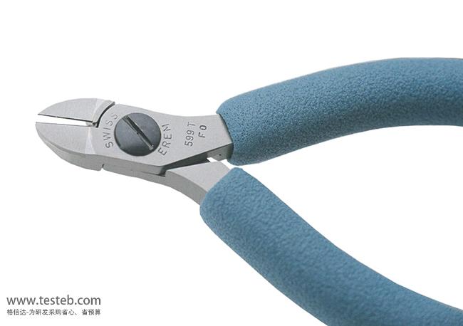 599TF碳化鎢鋼合金剪鉗,可剪切0.6mm鋼琴線、0.8mm硬線及1.5mm銅線,切口齊平,堅固耐用,適用于模型、半導體探針高硬、高韌性導線剪切。