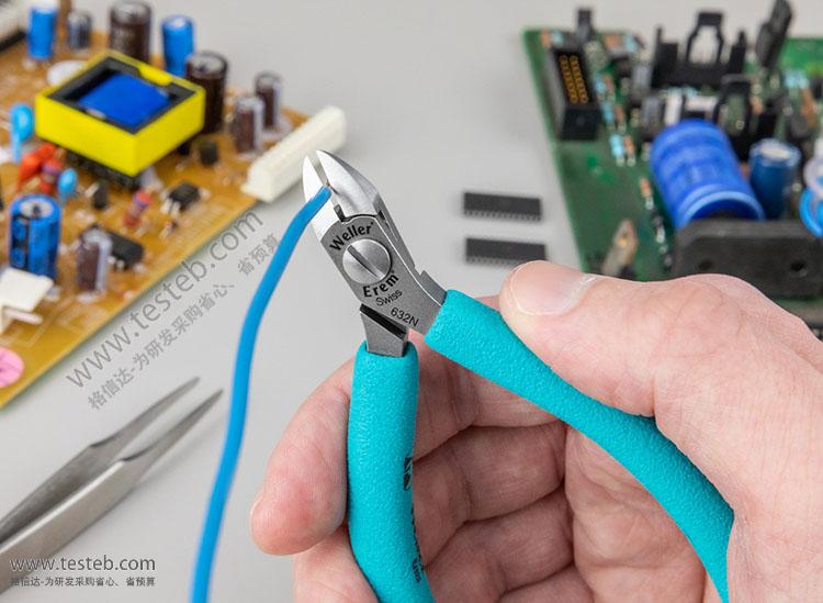 威樂Weller旗下瑞士Erem 632N斜口鉗具有微型鉗頭,用于1.3mm線徑以內(nèi)銅質(zhì)電子引腳導(dǎo)線剪切,導(dǎo)線末端完全齊平Full Flush,不需要再修剪,施加到元器件上的力也很小,可以避免錫爐工藝后剪腳的焊點(diǎn)開裂,用于微電子學(xué)、航天等。