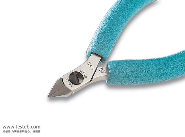 恩瑞Erem 676E剪鉗采用高等級工具鋼制造,頭部短小堅固,點剪切尖型刀頭下側逐漸收縮,易于接近難以接觸的空間操作,可平切0.6mm中等硬度線和0.8mm銅線引腳。
