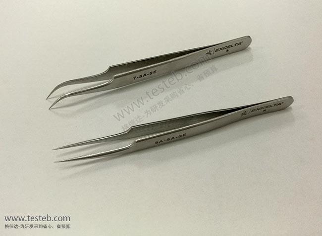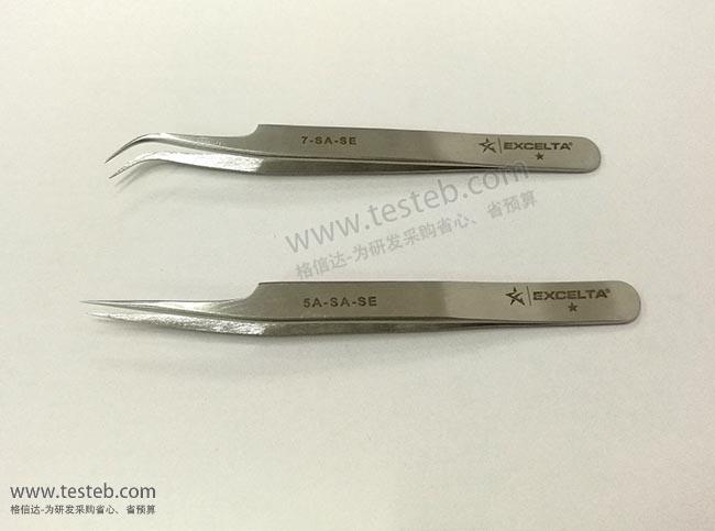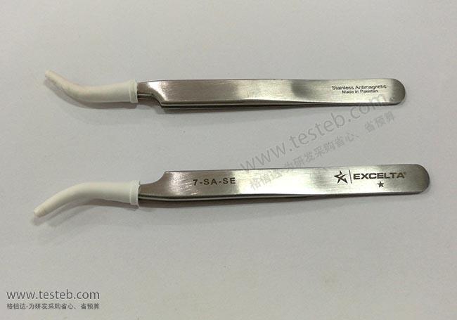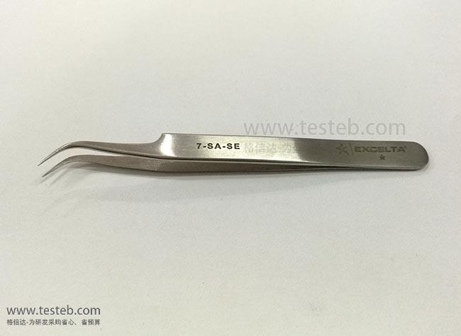 美國Excelta 7-SA-SE鑷子經濟款在巴基斯坦制造,45圓弧鷹嘴狀彎頭,尖部非常精細僅0.17mm,用于微電子、半導體行業精密夾取操作,外形與瑞士產地的7-SA標準型號一致,但材質性能略低,具有價格成本優勢。