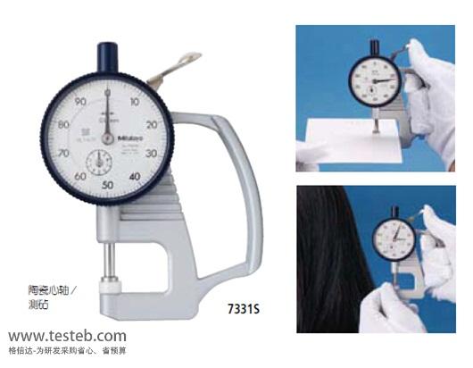 Mitutoyo三豐7331S輕型厚度表表盤式指針顯示,測量范圍0-10mm,分辨率0.01mm,帶有一個方便的握柄、拇指觸發(fā)器表和彈性心軸,可進行快速高效的檢測紙張、薄膜、金屬片、塑料片的厚度。