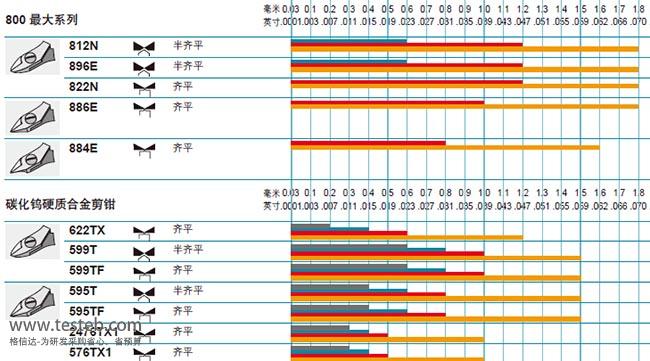 注:以上尖口剪鉗具有優良的可見性和可接近性,以下形狀鉗子可接近性降低但具有較高的剪切能力,可剪切全長度尺寸。