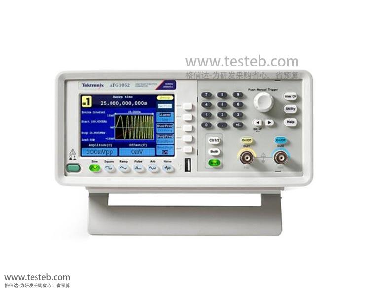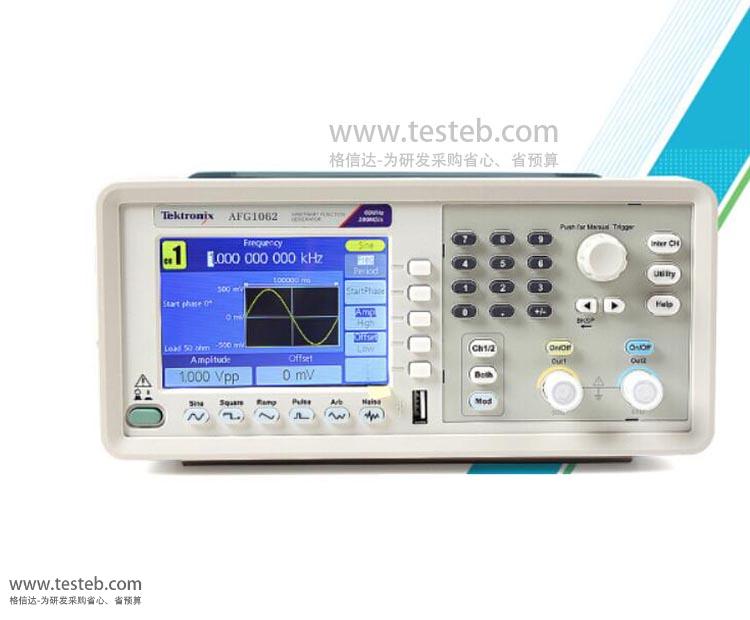 泰克Tektronix AFG1062任意波形函數信號發生器60MHz帶寬,2個輸出通道,在整個帶寬內1mVpp~10Vpp輸出振幅,14位垂直分辨率和1uHz頻率分辨率,可以生成各種實驗室測試所需精準波形,輕松得到更精確的測試結果,內置頻率計數器為測量頻率/周期/脈寬/占空比提供了簡便精確的方式。