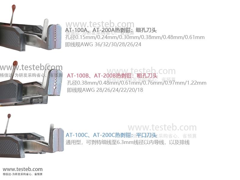 AT-5主機(jī)與AT-200系列防靜電熱剝鉗手柄搭配使用,可選AT-200A / AT-200B / AT-200C鉗子應(yīng)對(duì)不同線(xiàn)徑