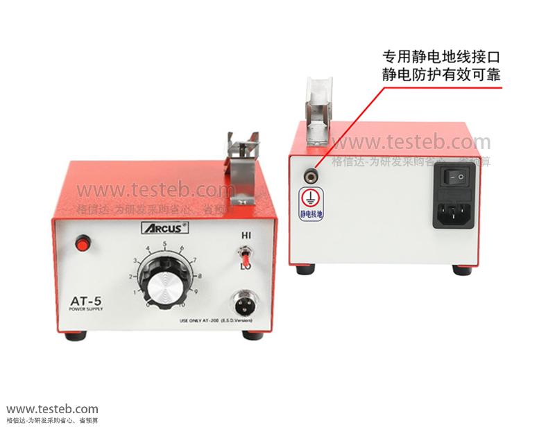ARCUS AT-5熱剝器主機額定電壓220V 50/60HZ、功率45W,紅色外觀、白色面板,重量2KG ON/OFF電源開關,LED指示燈,并具有一個手柄放置支架 HI / LO二選一的高低安全低壓電壓輸出插口,高溫線使用HI接口、普通低溫塑料使用LO接口 9檔旋鈕,可調整手柄鉗子刀頭溫度范圍130℃-680℃ 主機后側設置靜電地線接口,使靜電防護有效可靠 集成的電源線適配器提供一個隔離的低壓輸出端口以用于安全操作 |