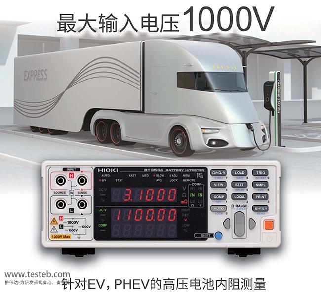 日本日置HIOKI BT3564電池測試儀適用于高壓化的EV、PHEV到住宅用蓄電池等多種電池組出入貨檢查,可對應1000V電壓直接測量,精度0.01%,內阻測量0.1mΩ~3kΩ,含總包電阻/母線電阻,具有模擬輸出功能,提供多種測試線及通訊線。