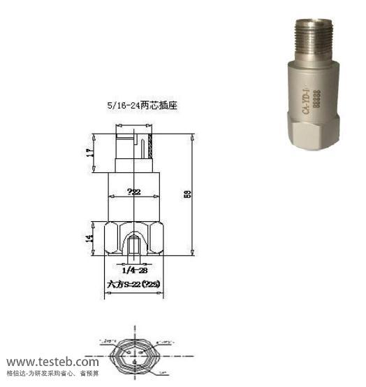 CA-YD-170壓電復合型加速度傳感器采用恒流源IEPE供電方式,18~28V DC恒流源,激勵電流2~10 mA,頂端5/8-24 三芯插座輸出方式,兩芯信號地與外殼間電阻108Ω。CA-YD-170傳感器振動溫度一體化測量,安裝方便,減少現場開孔數量,可直接接入PLC、DCS或二次儀表等控制系統。