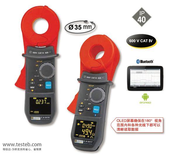 | 型號 | CA 6416鉗型接地電阻測試儀 | CA 6417鉗形接地電阻測試儀 |