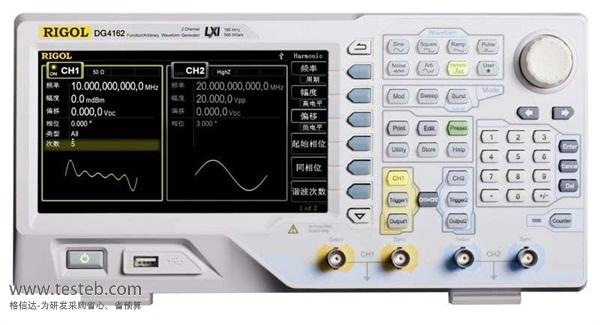 普源DG4102信號發生器是集函數發生器,任意波形發生器,脈沖發生器,諧波發生器,模擬/數字調制器,頻率計等功能于一身的多功能信號發生器。該系列的所有型號皆具有2個功能完全相同的通道,通道間相位可調。DG4102任意信號發生器采用DDS直接數字合成技術,可生成穩定,精確,純凈和低失真的輸出信號;高清寬屏顯示,人性化的界面設計和鍵盤布局,給用戶帶來非凡體驗;標配的LAN,USB接口,可輕松實現儀器遠程控制,為用戶提供更多解決方案。