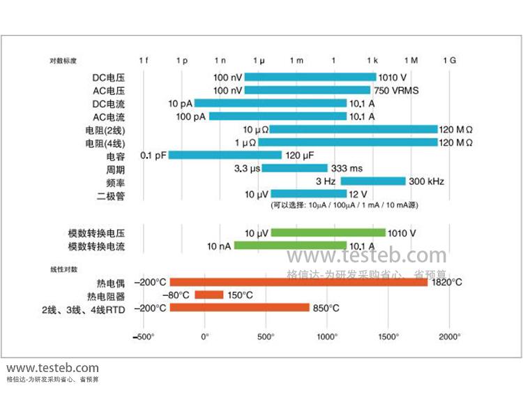 模擬數字轉化電壓:10 μV-1010 V;模數轉換電流:10 nA-10.1A