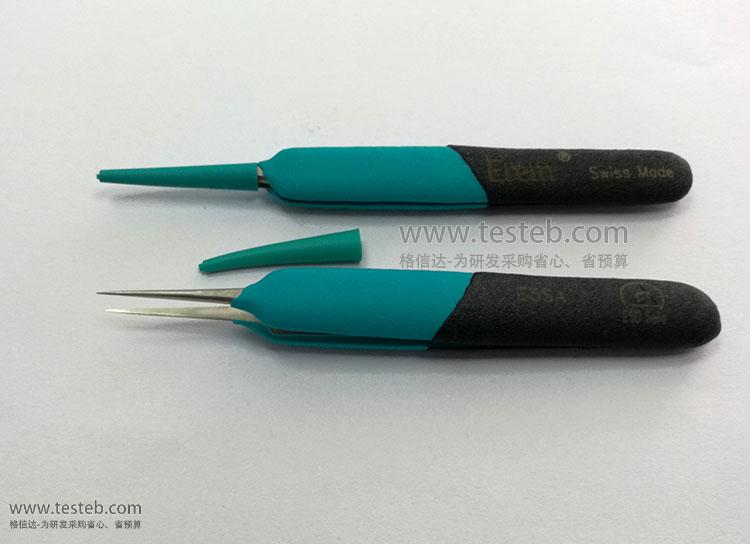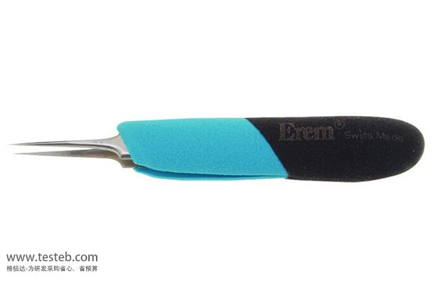 瑞士EREM E5SA鑷子0.2mm尖頭直細精密夾取,帶有符合人體工程學的ESD防靜電泡沫塑料手柄,提高了操作性能,長度度120mm、重量25g,非磁性、耐酸、耐溫達300℃,