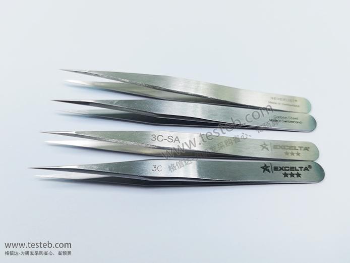 美國Excelta 3C鑷子為3C劍尖款式,尖頭寬0.17mmx0.1mm厚度,Carbon Steel碳鋼材質(zhì)高硬度60HRC,尖部經(jīng)過淬火硬化,使用壽命長,用于需要高強(qiáng)度及硬度場合,可在5X~10倍顯微鏡下精密夾取,Made in Switzerland瑞士產(chǎn)地。Excelta 3C碳鋼鑷子規(guī)格文檔http://www.jwjzzs.com/download/202305/Excelta_3C_Carbon_Steel_Tweezers.pdf。