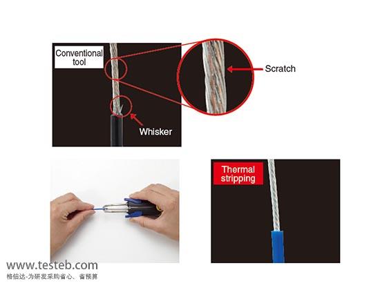 HAKKO FT-801電纜剝線鉗溫度調節范圍200℃-800℃,可有效剝除高耐熱性的PTFE特氟龍電線外皮,不會損失極細小的電線金屬絲,備有三款刀具選擇,剝線直徑0.13mm~1mm,適用于大部分的電纜規格。