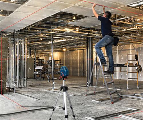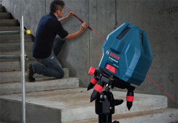德國博世GLL5-50標線儀工作范圍15m,使用接收器的工作范圍 (半徑)可達到50米,調平精度± 0,2 mm/m,是專業型5線高精度水平儀,具有獨特的可拆分底坐容易攜帶,多種選擇的激光線和擺放方式。
