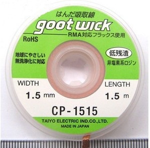 原裝GOOT固特吸錫線 CP-1515吸錫線 線寬1.5mm,采用銅線加特別化學配方精密編織,適用于精密儀器。格信達科技代理銷售goot CP-1515吸錫線、吸錫、吸取線,規格齊全。