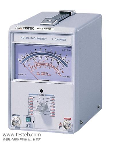 固緯GVT417B毫伏表電壓范圍300μV ~ 100V,靈敏度300μV,GVT-417B單通道交流毫伏表價格經濟,應用廣泛。