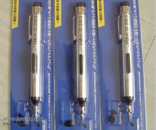 Hakko 393鋼筆型手動真空吸筆,吸力大小3g ~ 40g,可以吸取扁平集成電路等的細小組件,SMT組裝、IC芯片吸取