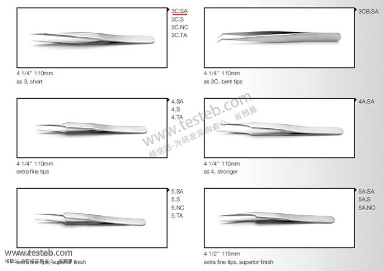 as 3, short 同3號鑷子,短劍尖頭 3C.C碳鋼、3C.S馬氏體高碳鋼、3C.NC高溫合金、3C.TA鈦合金 |
