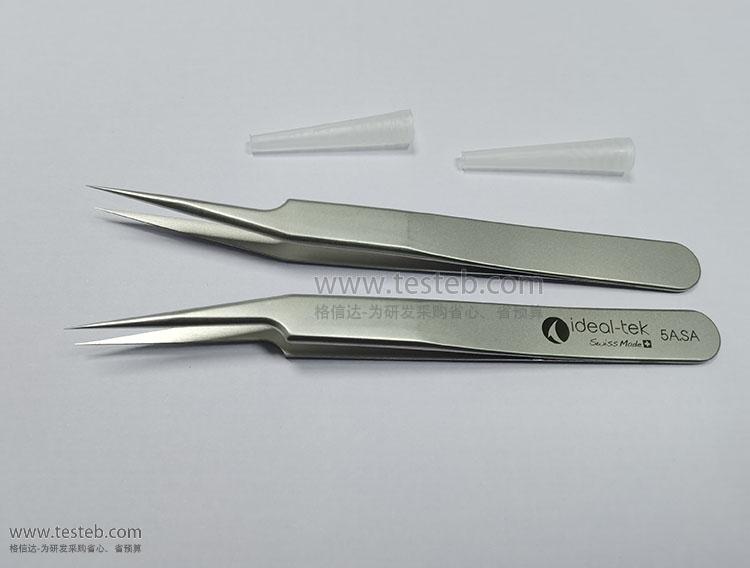 進口瑞士Ideal-tek 5A.SA鑷子extra fine tips, superior finish超細精密尖頭寬0.13mmx0.08mm厚,頭部微彎曲5度可避免工作時實現被擋住,在受限空間下獲得良好的操作視野。鑷子長度115mm,采用SA奧氏體不銹鋼材質制造,具有耐高溫、防腐蝕和抗磁性,精密拋光邊緣,不刮痕防眩磨光,適合用于微電子及實驗室和醫療顯微鏡夾取操作。