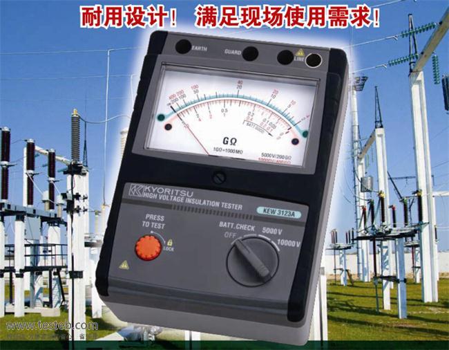 日本共立3123A絕緣電阻測試儀具有5000V/10000V兩檔測試電壓,2000Ω/4000Ω自動量程,具有可任意切換高低量程的雙重刻度顯示面板,耐用設計,滿足現場使用需求。