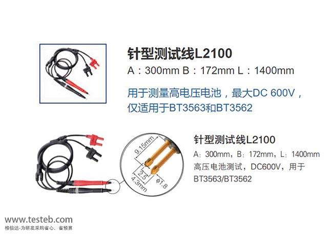 日置HIOKI L2100電池測試儀針型測試線探頭可連接BT3562、BT3563,對大型低電阻元件、高壓電池組高速測量,配合3561測試儀用于小型充電電池的出貨/驗收的高速檢查。