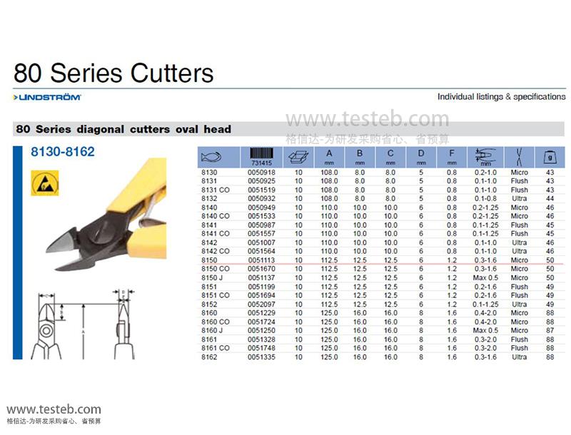 | 8150斜口剪鉗 | 0.3-1.6 mm | Micro微斜切口 | 12.5 mm | 12.5 mm | 112.5 mm,50 g |