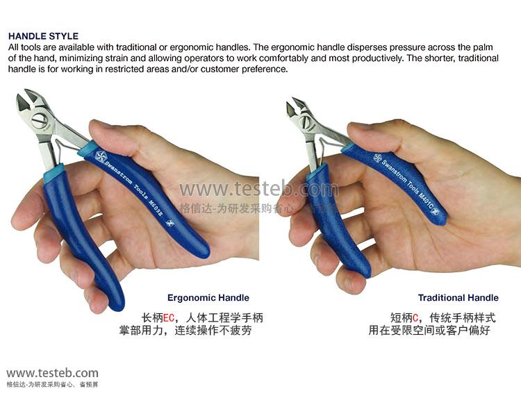 Swanstrom Tools醫療級剪鉗M407EC由高品質鉻、高碳合金鋼鍛造制成,具有高強度和耐用性,可剪切0.25mm即0.01"醫用器械導線,如鎳鈦絲、不銹鋼絲網、鉑金或銅銀線等,切口完全平整,尖錐形鉗頭用于在狹小的地方操作,符合人體工程學的雙色ESD防靜電長手柄,操作舒適,另有標準手柄款M407C。