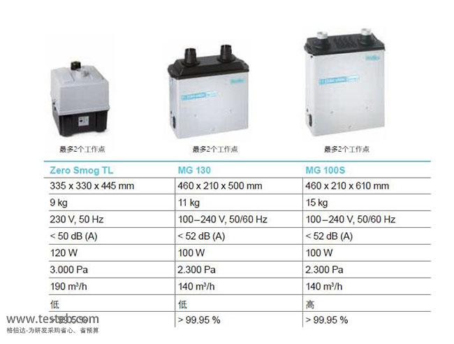 | 型號參數 | Zero Smog TL雙工位 | MG 130雙通道 | MG 100S吸煙儀 |