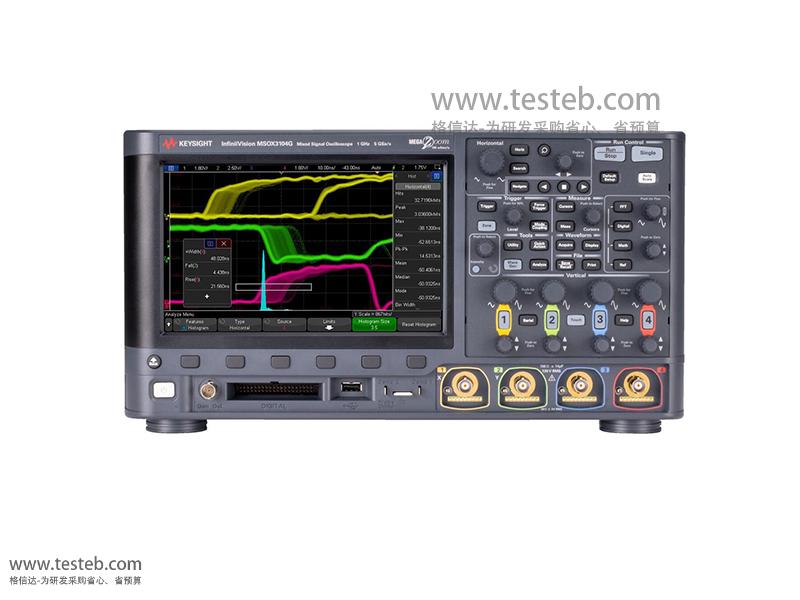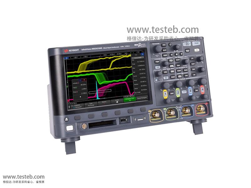 KEYSIGHT MSOX3024G示波器具有4個模擬通道+16數字通道全2.5G采樣率、4Mpts存儲器和100萬波形/秒的捕獲率,8.5英寸電容觸摸屏和區域觸摸觸發功能,集成協議分析儀、頻率響應分析波特圖、20MHz任意波形發生器多合一功能,同時標配嵌入式軟件,可提供波形和測量直方圖。