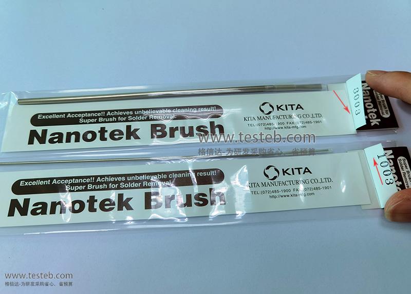KITA Nanotek Brush NANO-3-003納米刷頭握把頭部大小3mm,刷毛為0.03mm不銹鋼絲,用于有效去除測試芯片IC Socket探針上的掛錫殘渣,可以傾斜清掃各類測試插座中的彈簧片或者針頭頂端,垂直清掃針頭表面殘留的焊渣焊料,讓接觸效果更好。