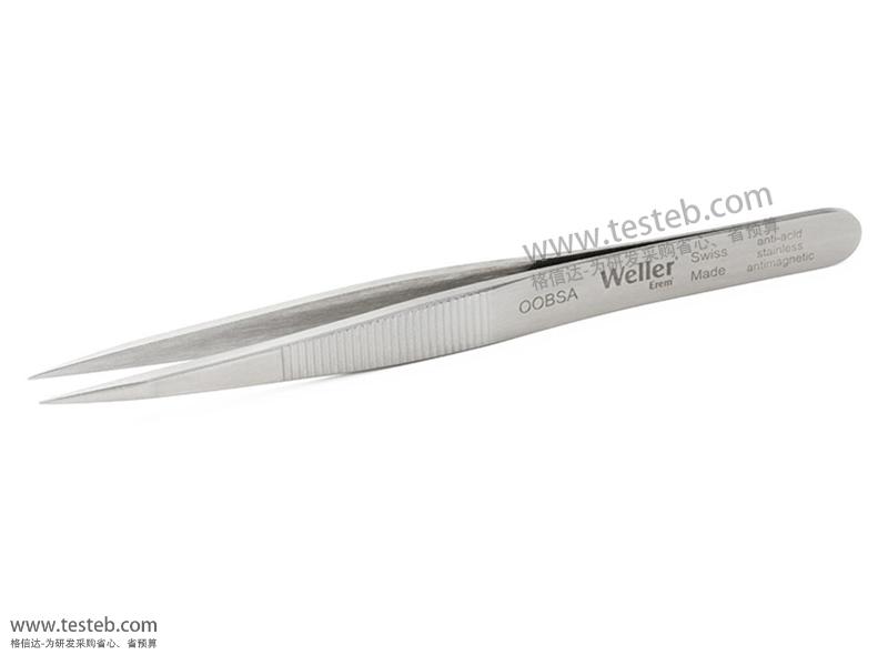 威勒Weller Erem OOBSA是OOSA鑷子的衍生型號,具有鋸齒型握把保證安全防滑,另有OOCSA更短的尖頭、OODSA帶有鋸齒形手指握柄和尖頭內齒、EOOSA和EOODSA帶防靜電泡沫手柄鑷子型號,均為Swiss Made瑞士制造,特殊不銹鋼耐酸堿腐蝕、無磁性stainless stee、anti-acid、antimagnetic,耐高溫工作溫度達300℃。