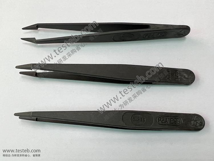 瑞士環球SIPEL塑料鑷子具有4材質可選:DEL白色聚甲醛樹脂、STD/G灰色靜電耗散材料、STD黑色靜電耗散、ESD黑色防靜電材料,具有非磁性、耐酸、耐高溫特性,最高工作溫度可達240℃。P2A-ESD塑料鑷子為直頭型,尖頭尺寸1.8mm,黑色,全長118mm,應用于實驗室、光學、顯微鏡、微電子應用。