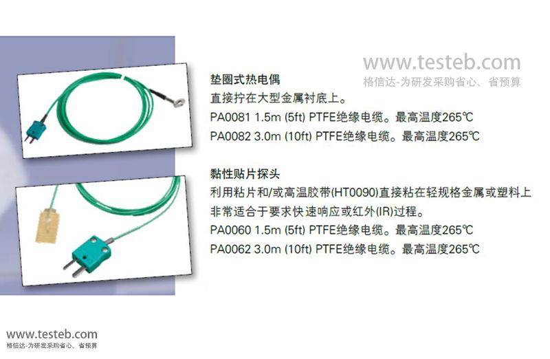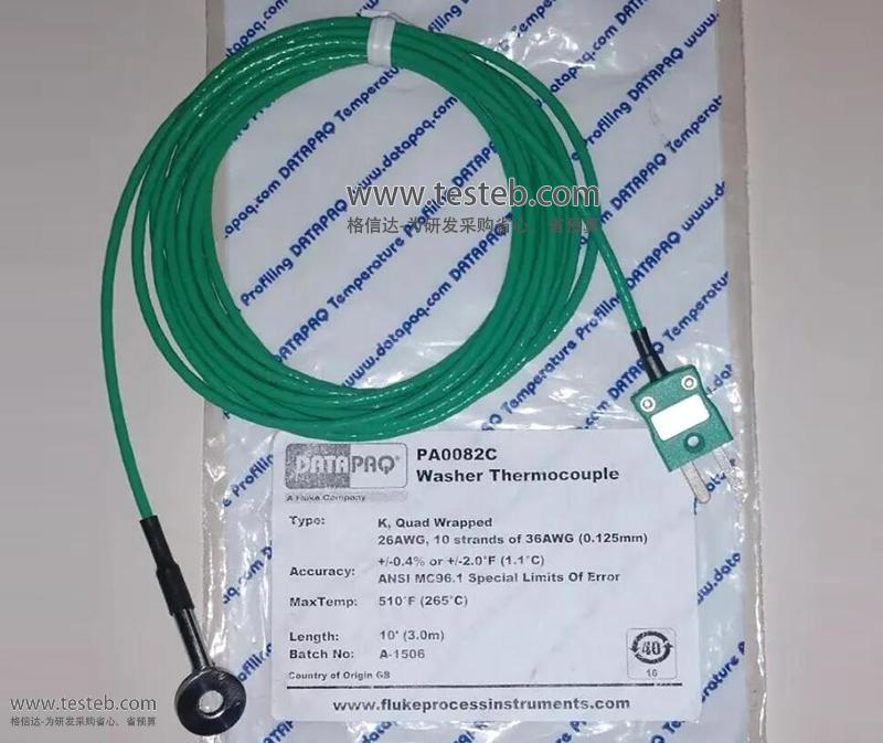 DATAPAQ PA0082熱電偶探頭前端采用圓形墊圈測溫頭,直接擰在大型金屬襯底上緊固連接,另一端小型插頭與EasyTrack2主機或ET3爐溫儀機子連接,測溫范圍265℃,精度±0.4%,IEC584標準綠色K型熱電偶纜線長3米,另有PA0083長度2米、PA0081長度1.5米。