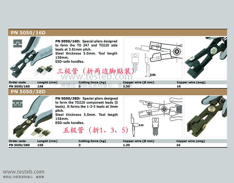 PN-5050/16成形鉗:對TO220三極管、TO247元件MOG管邊緣引腳成型腳距3.81mm