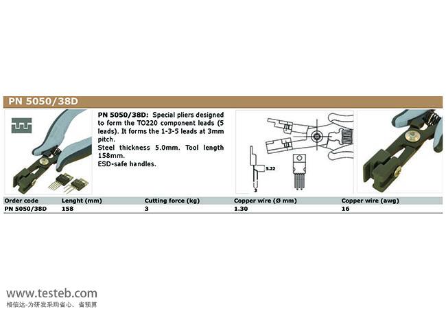 PN-5050/17D折彎鉗:把TO220元件引腳折彎90度直角,且中間腳比兩邊引腳突出長度3.8mm