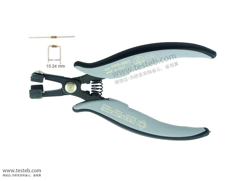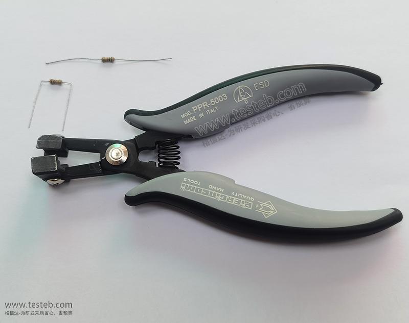 意大利皮爾杰克Piergiacomi PPR-5003成型鉗用于將二極管電阻元件兩端引腳彎折90度成U型直角,成形后本體寬度1.5cm,便于PCB插件焊錫,可用于0.6mm~0.8mm管腳直徑、本體直徑3.5mm以內,操作快捷、精確,ESD防靜電手柄。